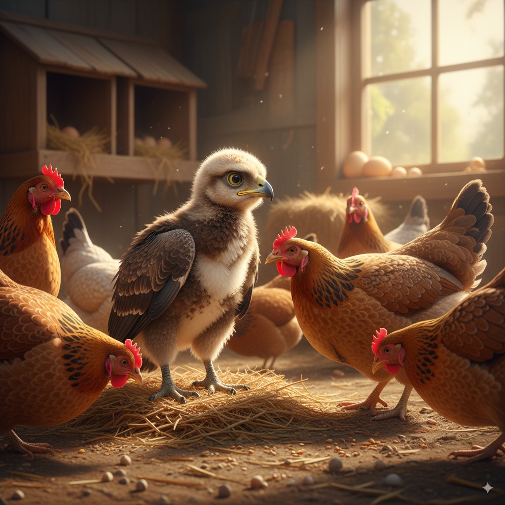 Story 1 : Baby Eagle in Hens Group – Listening to Your Wings – The Courage to Fly